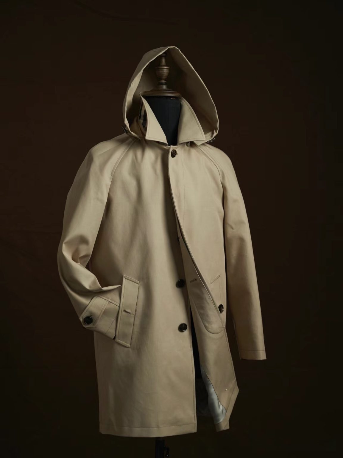Experience superior protection with the Burberry Hooded Overcoat in Sand. We constructed this coat with a premium, water-repellent shell that provides a smooth, matte finish. The integrated protective hood offers additional coverage against rain and wind, while the high standing collar adds a layer of warmth. A clean button-down front and adjustable buckled cuffs maintain a polished silhouette. Functional side-entry welt pockets provide secure storage for your daily essentials. The interior features a smooth, high-quality lining for effortless layering over business suits or casual knitwear.