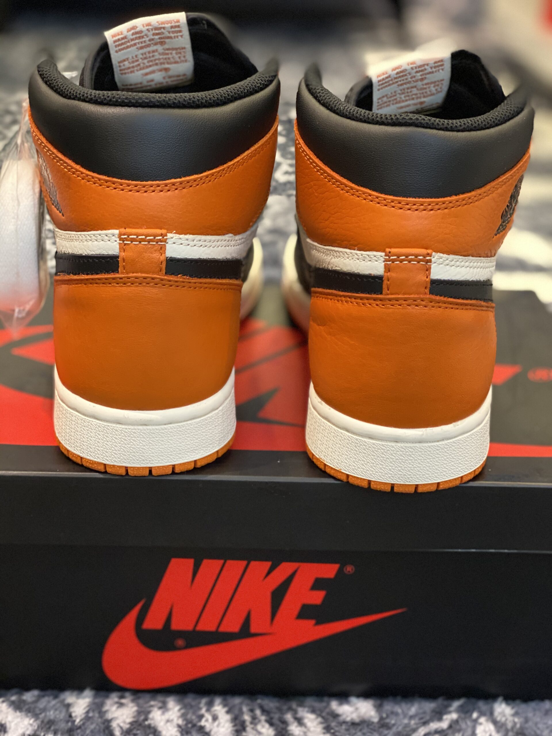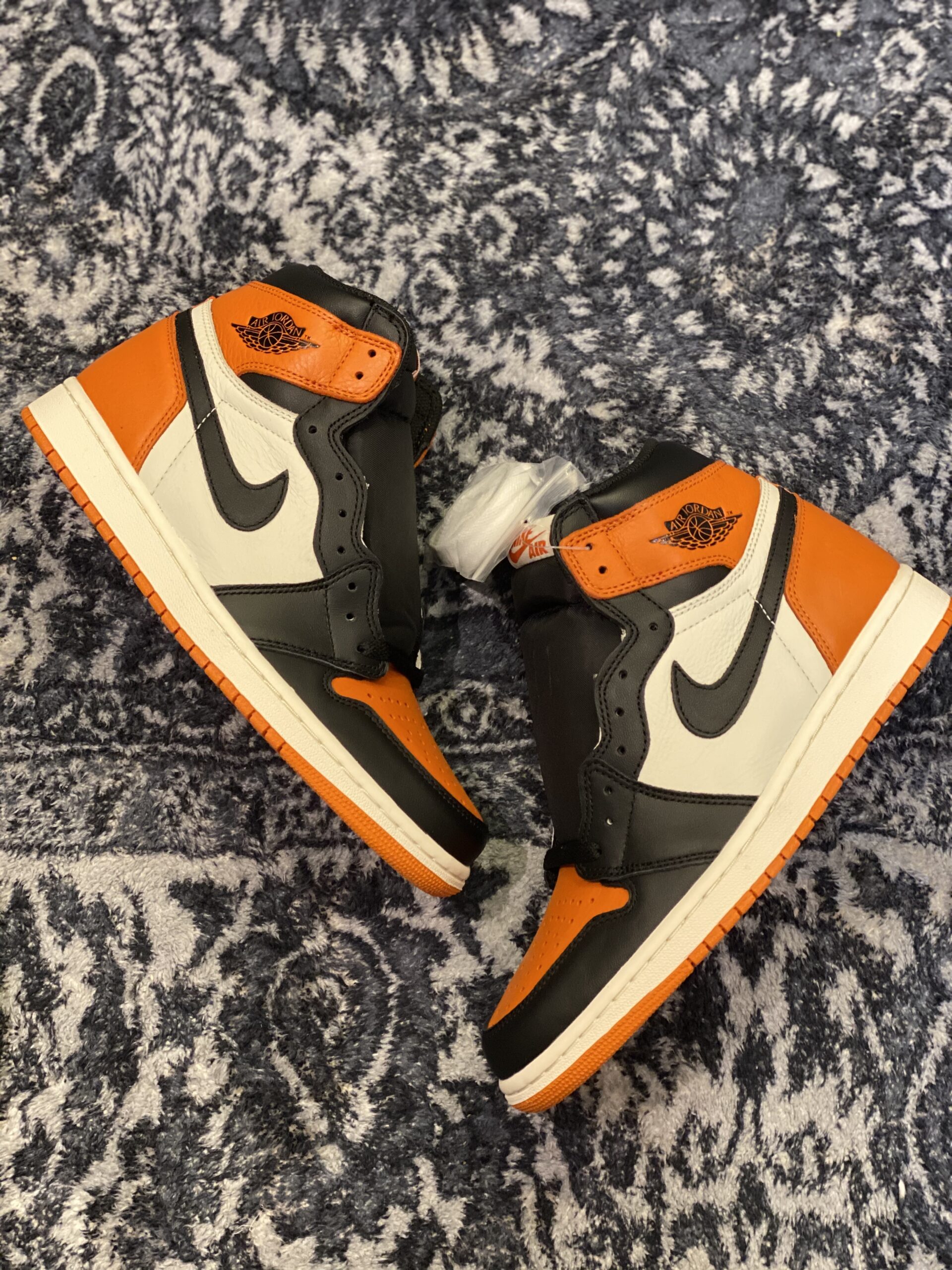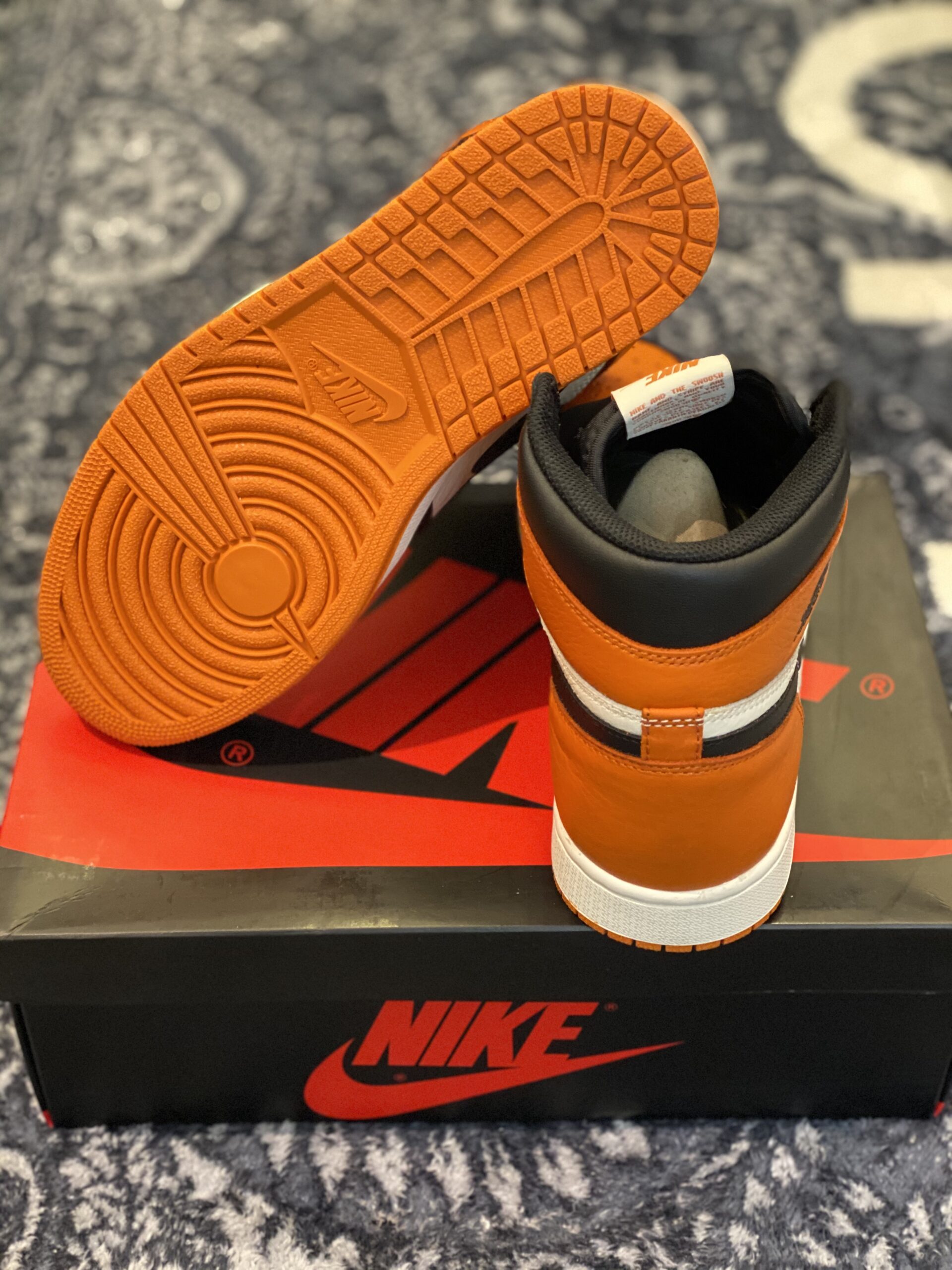 The Air Jordan 1 Retro High OG “Shattered Backboard” actively showcases a legendary colorway inspired by basketball history and bold on-court moments. You immediately command attention through its striking mix of vivid orange panels, crisp white leather, and deep black overlays that actively create a sharp, structured contrast. The premium leather upper actively delivers a smooth, durable feel while maintaining a refined, high-end appearance throughout daily wear.