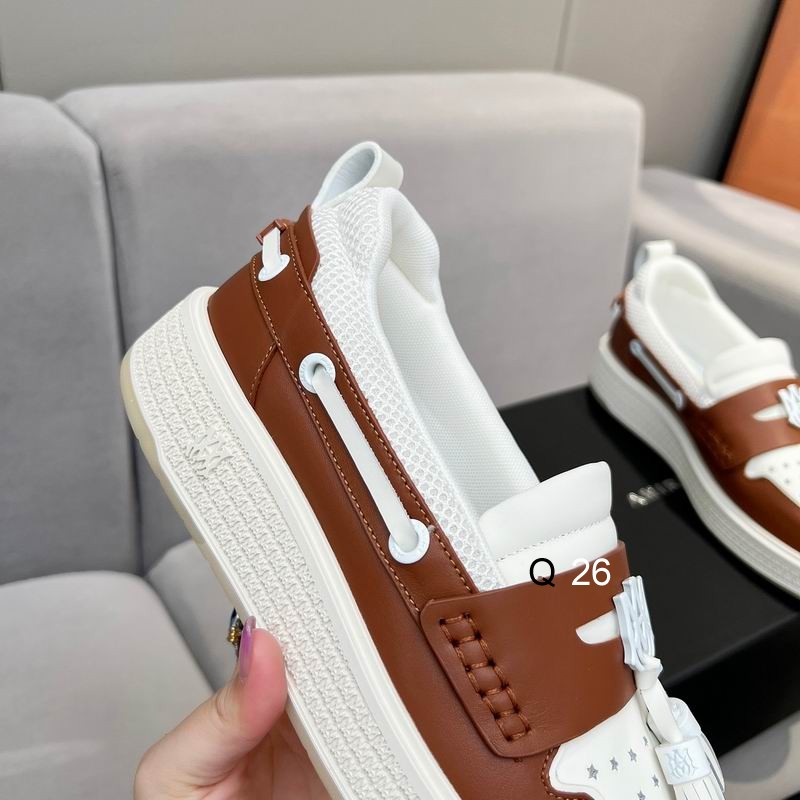 We fuse the rebellious energy of California street culture with high-fashion sophistication in the Amiri MA Hybrid Tassel Loafers in White and Brown. First and foremost, our designers created this striking “Spectator-Luxe” silhouette for the individual who demands the structure of a classic loafer but prefers the high-impact, chunky appeal of a technical sneaker base. To achieve this, we utilize a premium mix of optic white calfskin and rich mahogany brown leather panels, creating a sharp, multi-dimensional texture that radiates effortless prestige. Furthermore, this design features oversized traditional tassels and a moc-toe construction that pays homage to the raw, artistic energy of vintage Ivy League style, reimagined through a gritty, modern lens. Consequently, it serves as the definitive choice for those who want to project a sense of “Academic Grunge” while maintaining a bold, high-fashion presence.