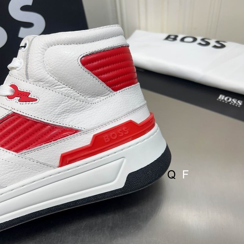 BOSS-inspired white and red high-top sneakers. Initially, our designers reimagined the sleek professional silhouette for a versatile, sharp look. This model masters the balance between modern minimalism and elite city style perfectly. Furthermore, we emphasize architectural precision and effortless aristocratic flair throughout the design. This creates a definitive appeal for those who value luxury in an active, modern wardrobe. Specifically, we use premium, high-density technical fabrics and vibrant red structural overlays. This material achieves a sharp, commanding silhouette for the wearer. Moreover, the sophisticated high-collar profile pairs perfectly with a streamlined, athletic aesthetic. Consequently, artisans meticulously refine every detail to ensure a commanding presence in any environment. This approach defines modern luxury and creates a timeless influence for the discerning individual.
